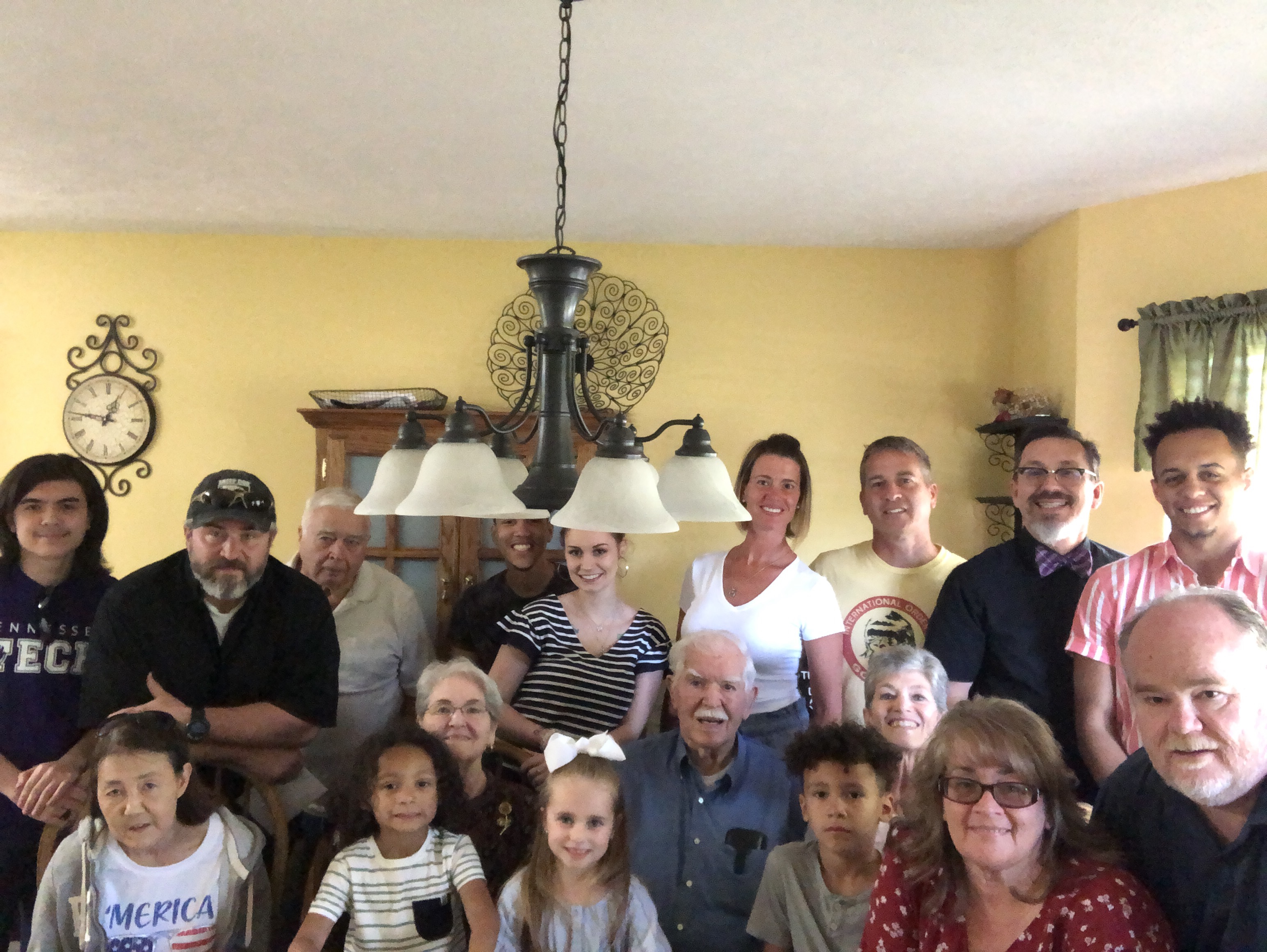 And then the time came for the first family group to need to leave so they could go to celebrate another Mom. That meant we needed to capture a group photo. Everyone tried to squeeze together as I tried to finagle a way to get the iPhone to mount on a piece of wall art. Furniture was moved as was wall art! Eventually we got everyone to fit. We even got those camera averse folks to pose in frame. Smiles were put on and the timer was set from my wife’s watch. 3, 2, 1…..done.