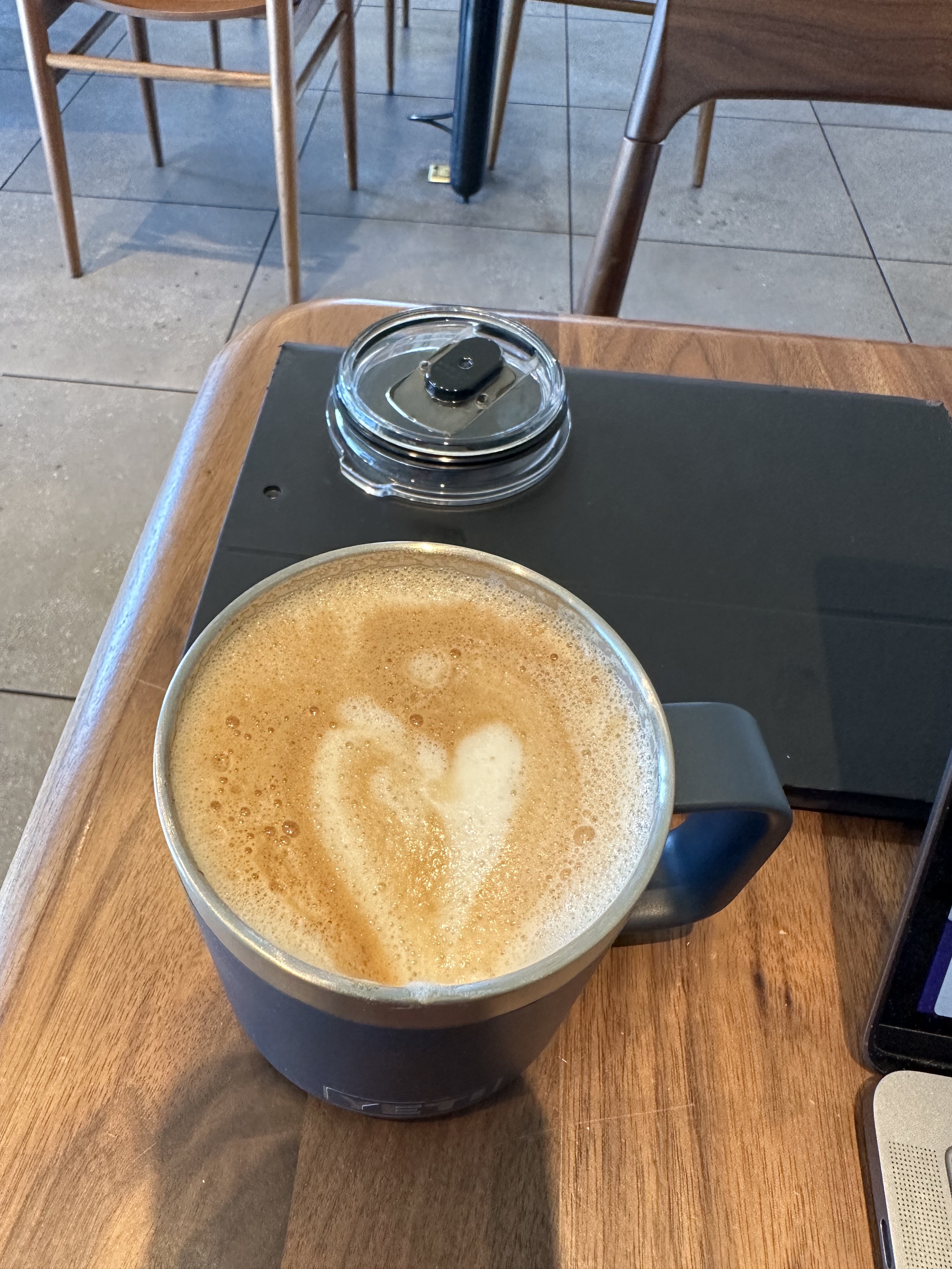 I ordered, sat down, then waited to hear my name get called so I could start to enjoy when all of a sudden my barista brought my cup right to my table…with latte art!