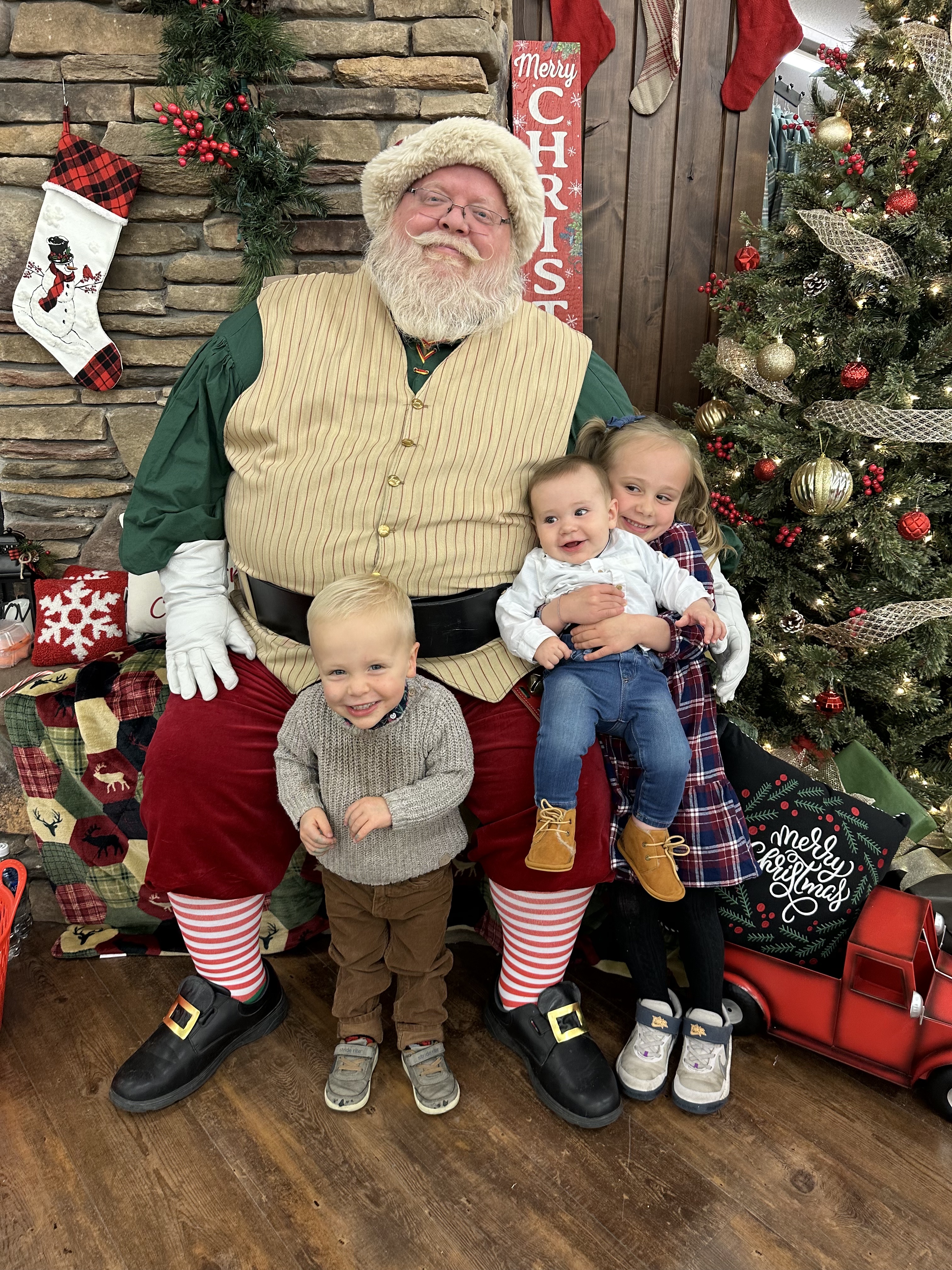 I came to learn that my daughter had packed them up in the car to get out of the house for a bit. Daddy was on a “Bro-Weekend” trip with friends from school so she had been home by herself with three kids under the age of five for three days at that point. While driving they saw reindeer in an outdoor pen at the hardware store. The first desire produced a second, greater desire. Sure, we can stop. The next thing you know, the kids see the l-o-n-g line for Santa and of course they need a picture with Santa!